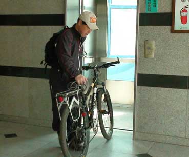 空港から釜山駅行きのリムジンバスに乗り、釜山駅前に着いた。バスから自転車を降ろして見ると、