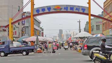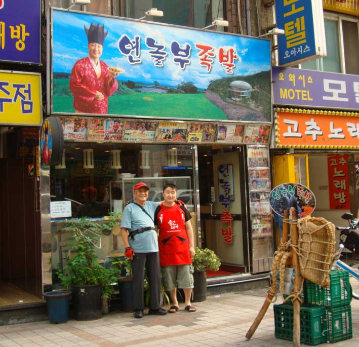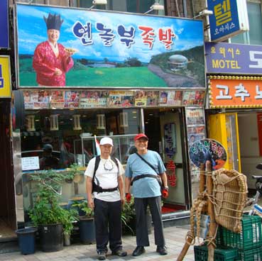 金海国際空港から、バスで釜山市内に入り、チョパル・コルモク(豚足横町)へ行った。