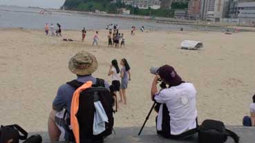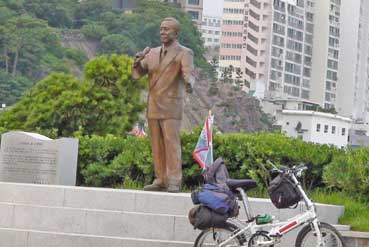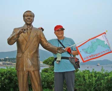 松島の海水浴場はなかなか景色がいい。自転車でその当たりを廻ってみた。歌手の玄仁の銅像があった。