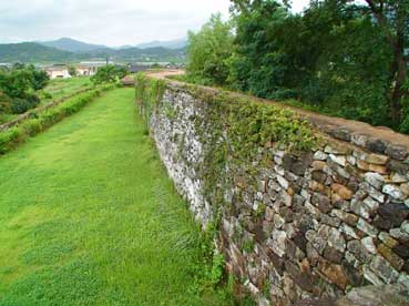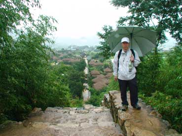 | 小雨の中、傘を差して、城壁の上を歩く。 | |||