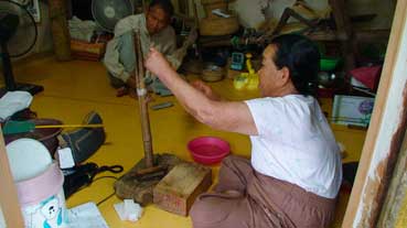 | サムベ(麻布)を織っている。 | |||||||