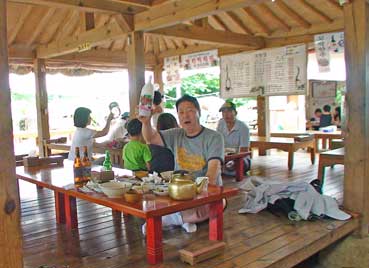 | この地方特産のチャントンイ(ムツゴロウ)料理 | 主人アジュモニのソン・キョンヒさんは話し相手になってくれた。 | ||||||