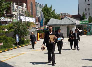 9月3日、朝5時過ぎ頃起きて、チムジルバンを出て、聖堂へ。7時から出荷式が行われ、