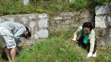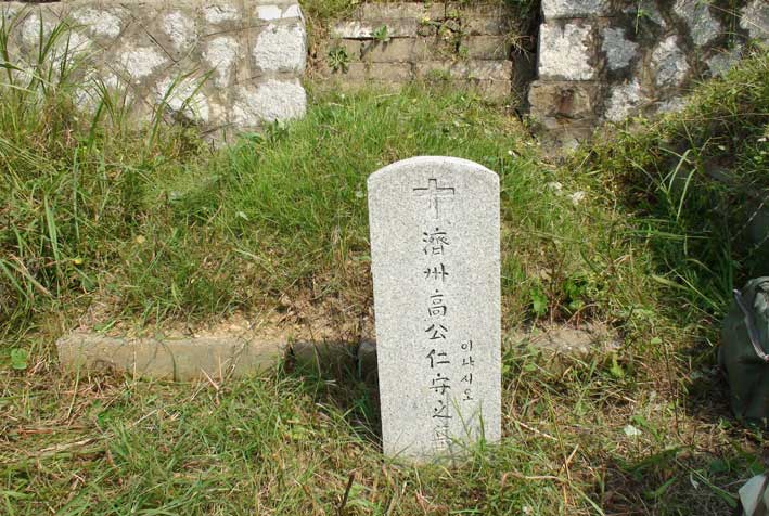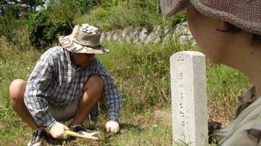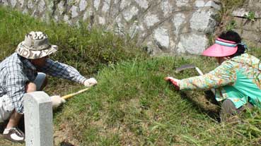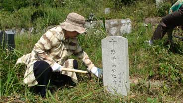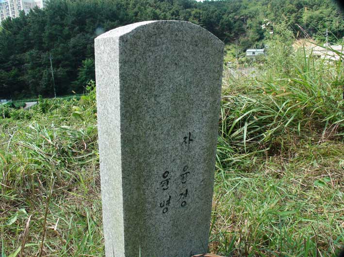 墓石の後には、子供であるユンギョンとユンミョンの名前が書かれている。