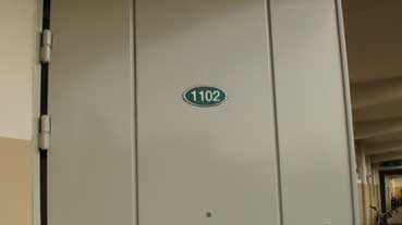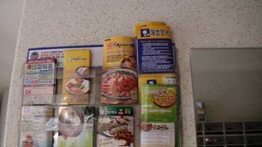 | エレベータの横にチラシを置く場所がある。ポストにはチラシを入れない。 | エレベータの鏡に映っている自分。 | |||||||