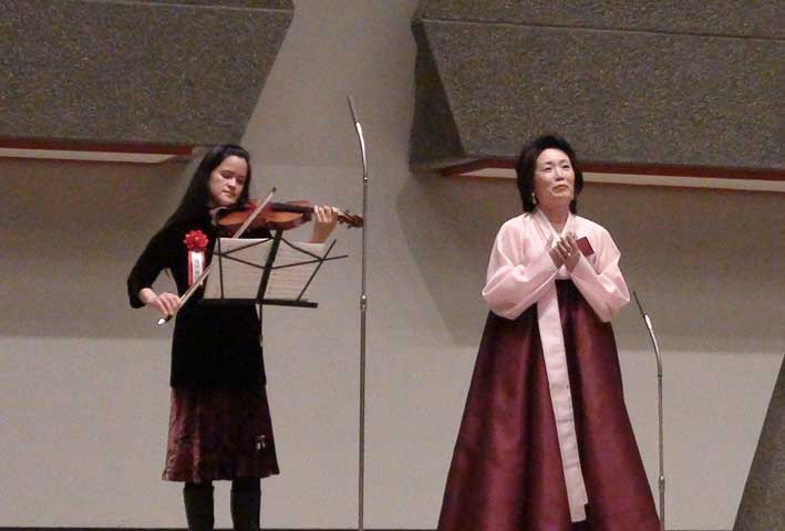 懐かしのコリアの歌・日本の歌、Megumi Stohsさんのバイオリン演奏、金桂仙さんのソプラノ。