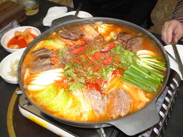 | ブデチゲをアンジュにして、ビールとソジュ。 | ||||||