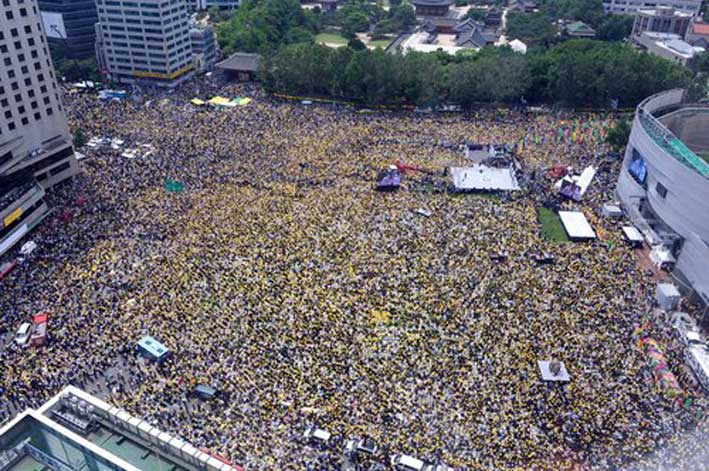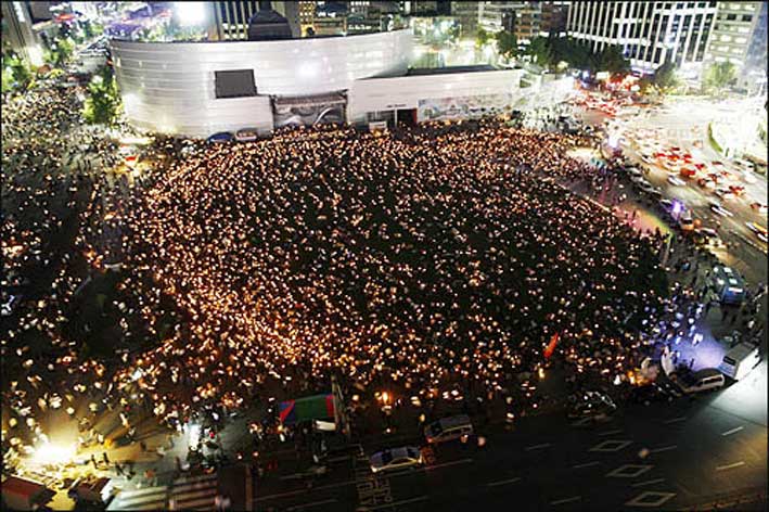式が終わった後、夜中にもソウル市庁前に集まった。