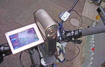自転車のハンドルにビデオカメラTG1を取り付け、撮影をしながら自転車を走らせた。