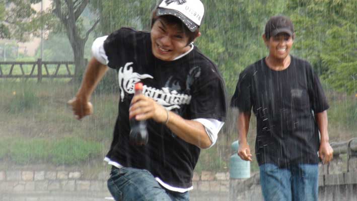急に雨が降ってきた!