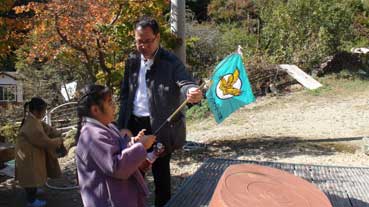 金ビョンゴンさんの「青鶴洞礼節学堂」の入口で。