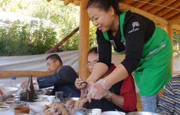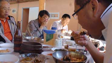 これまた、チョンテさんの思いが入っている蒸したニワトリも注文し、山菜ビビンパとおいしい昼食だ。