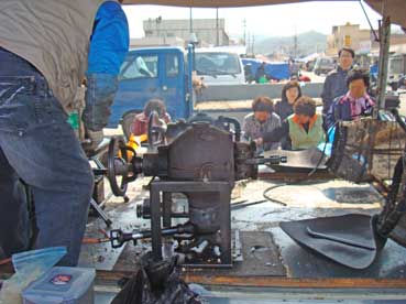 | 島のアジュモニたちが昆布を仕分けする。 | ||||||