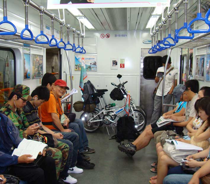 J 韓国・釜山の地下鉄に自転車と共に乗る。