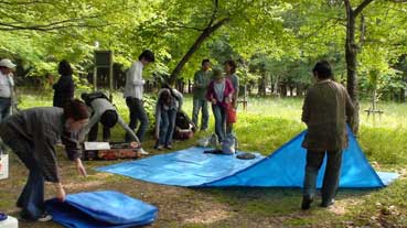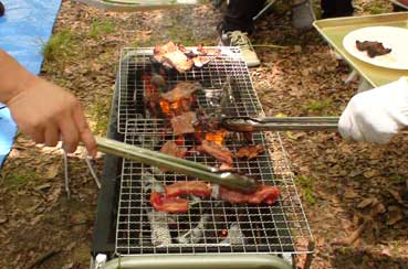| 火をおこし、肉を焼くのは、稲木さんたち。 | ||||||||