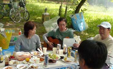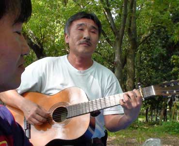 | ステさんが、ギターを弾きながら、歌を歌う。 | ![]() |