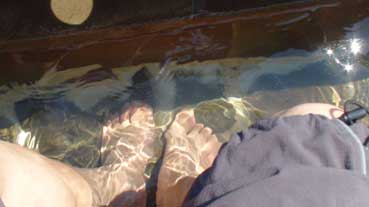 | 五十鈴川に足を沈めると、冷たくて気持ちがよい。 | |||||||