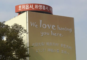 | バスから見る「ようこそジェジュへ」 | ||||||||||