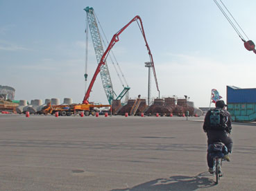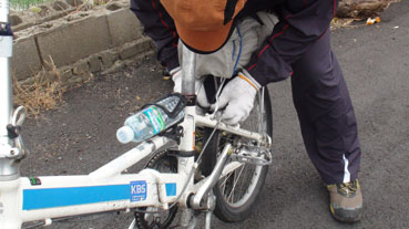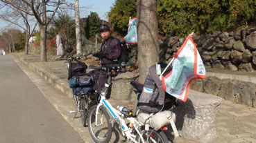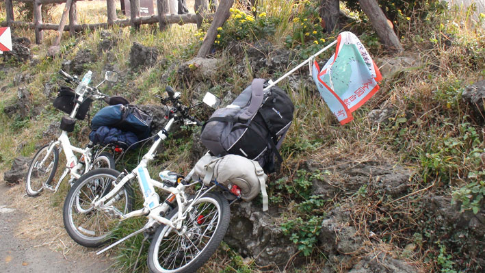 | 風が強いため、自転車が何度も倒れた。私の自転車がトラブルが起きて、ブレーキの故障。しかし、チョンテさんの応急処置で、なんとか動くようになった。 | |||