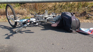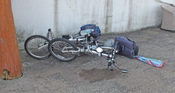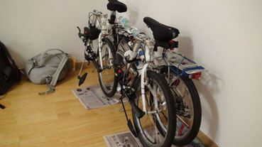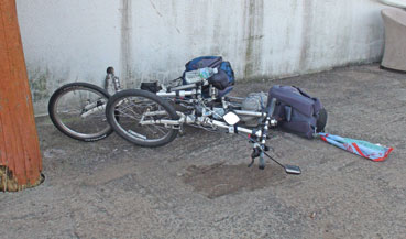 | 食堂からでると、自転車は風で倒れている。 | ||||