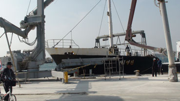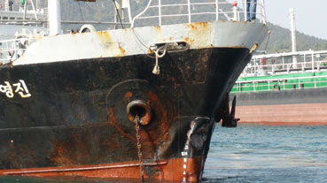 | 貨物船が岸壁に衝突した。船の先頭がへっこんだ。 | ||||||