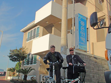 | 自転車を車に乗せて、済州市へ。 | 宋チョルミンPDと姜ヒョソブカメラマン。 | |||