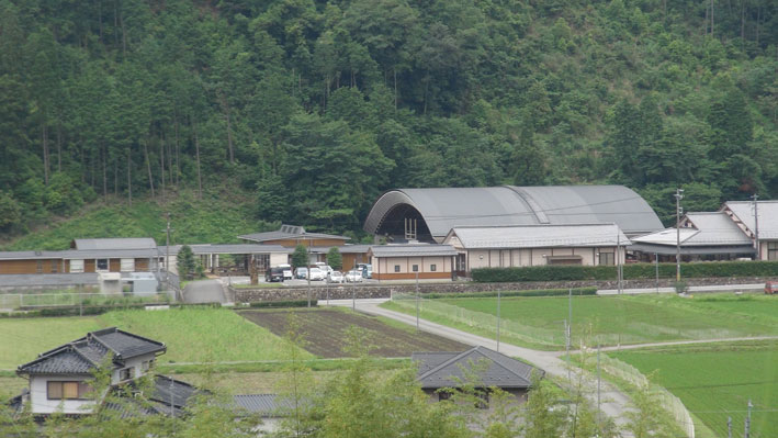 自然の中にある「学遊館」。ドームの屋根、すべてが木造づくりだ。