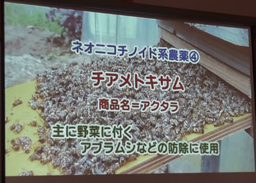 | 農薬によって、大量の蜜蜂が死んだ。 | ビデオ上映を行った。 | |||