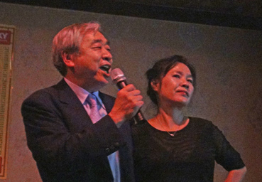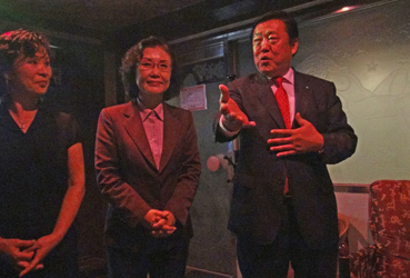 組合事務所前で、南理事長、李常任理事と記念撮影
