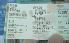 | 空港バスの切符。チャンシルまで12,000ウオンだ。 | ||||||||||||||||||