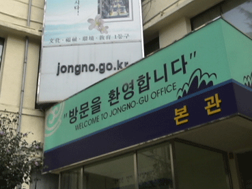 | 鍾路区庁へ行った。 驚いたことに、役人たちはみんなモニターの前に座っている。 1957年、兄と住んでいた、左の封筒の住所を告げると、係員は「ありました」といって、下の地図をプリントアウトしてくれた。料金は700ウオン(70円)だ。 |