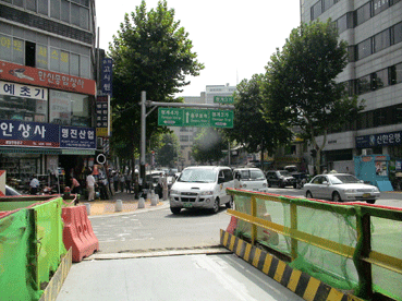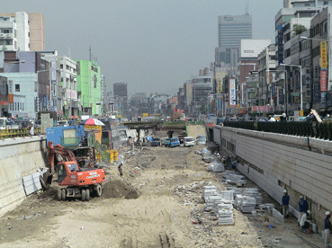 | 近くのチョンゲチョン。工事が進んで、もう川のかたちになっている。 | ||||||||