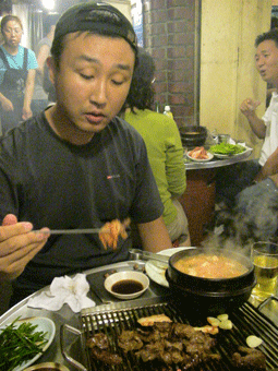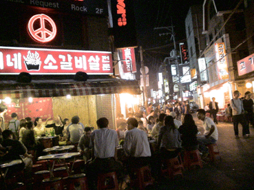 | 焼肉の店。お客は道にまであふれる。 | |||||