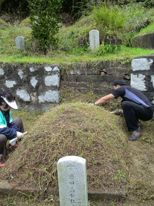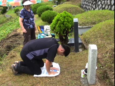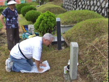 允明の車でヒョンス(兄嫁)の家へ行き、3人で兄の墓があるところへ行った。