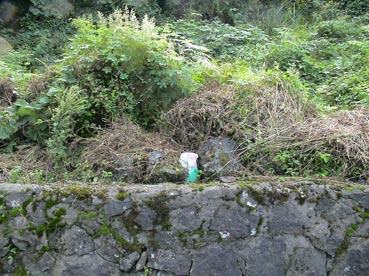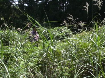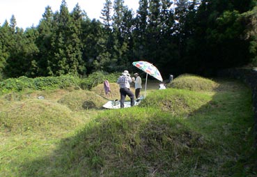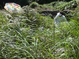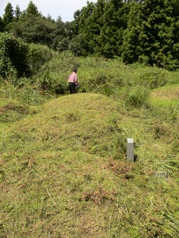 | 墓は草ぼうぼうで、墓石もどこにあるか、見えない。 |