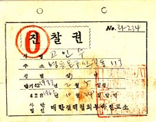 | 第一国民兵・兵籍登録証明証。 兄さんは朝鮮戦争のとき、兵役に行った。そのときの証明なのかな。1961年9月20日転入とある。 |