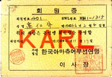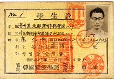 | 学生証、韓国電波学院のもの。 1961年6月9日発行になっている。 |