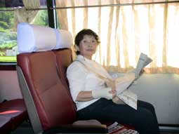 | 市外バスに乗ったのは初めてだったが、とても快適ですばらしい。座席もゆったりで観光バス以上だ。 | ||||||||||||||||||||||||