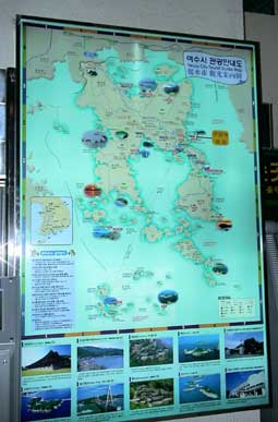 | ヨス麗水。21日夜、8時頃ヨスに着いた。ホテルに荷物を置き、夕食。豪華にと韓定食を注文したが、これが口に合わなかった。 | ![]() |