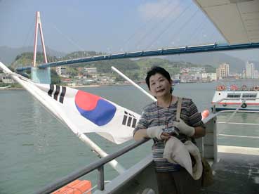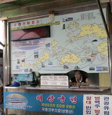 | 遊覧船乗り場で、2時間コースの遊覧船に乗った。午前11時発だ。 料金は13,000ウオン(1,300円) |