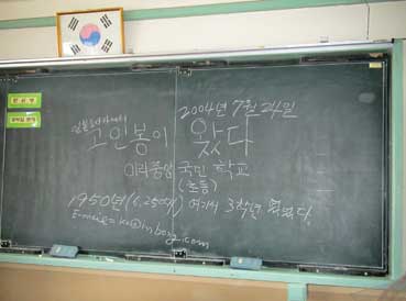 | 一つの教室に入った。黒板に「高 仁鳳が来た」書き残した。 | ||||||||||||||