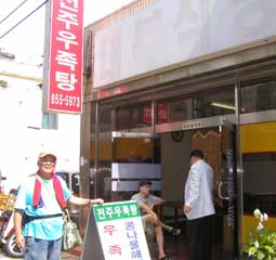 | 遅めの朝食を「全州ウジョクタン」という食堂した。ここの主人朴キヮンヨブさんはここで30年以上住んでいたので古い裡里市の事を知っていた。 | ||||||||||||||||||||