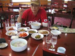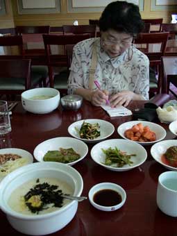 | 中央教会の隣の食堂「ソルミオク」で昼食をとる。 | 食堂のムンアジュモニと。 | ||||||||||