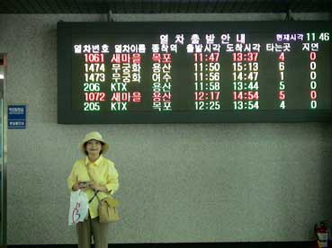 | 列車の出発案内板。列車番号206のKTX 11:58発 |