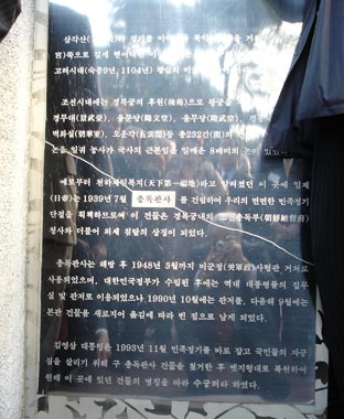 | 青瓦台に入るとき、厳しいセキュリティー検査があった。私のビデオカメラも持込禁止で、あまら写真が撮れなかった。 | ||||||||