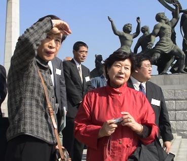 | 初代大統領、李承晩の銅像の前で。 |