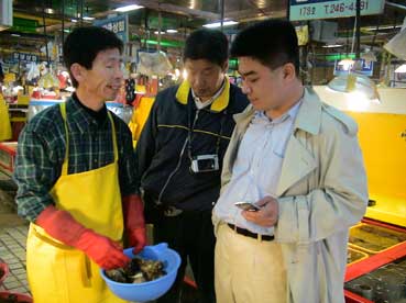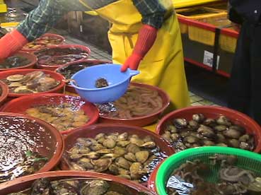 | 釜山についた7日はフリーだ。 有名な魚市場、チャガルチ市場へ行った。 |