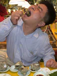 | 壺焼きが大好きな大崎さん、たっぷり食べれて大はしゃぎ。 | ![]() |