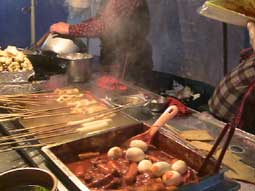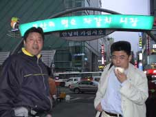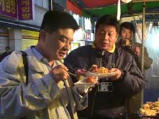 | 屋台でおでんや天ぷらを食べた。 「おいしい!おいしい」と、食べて、いくら?なんと3人で3,000ウオン(300円) |