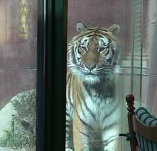 | 朝食はホテルでバイキングだ。食堂の外にはなんとトラがいた。 | |||||||||||